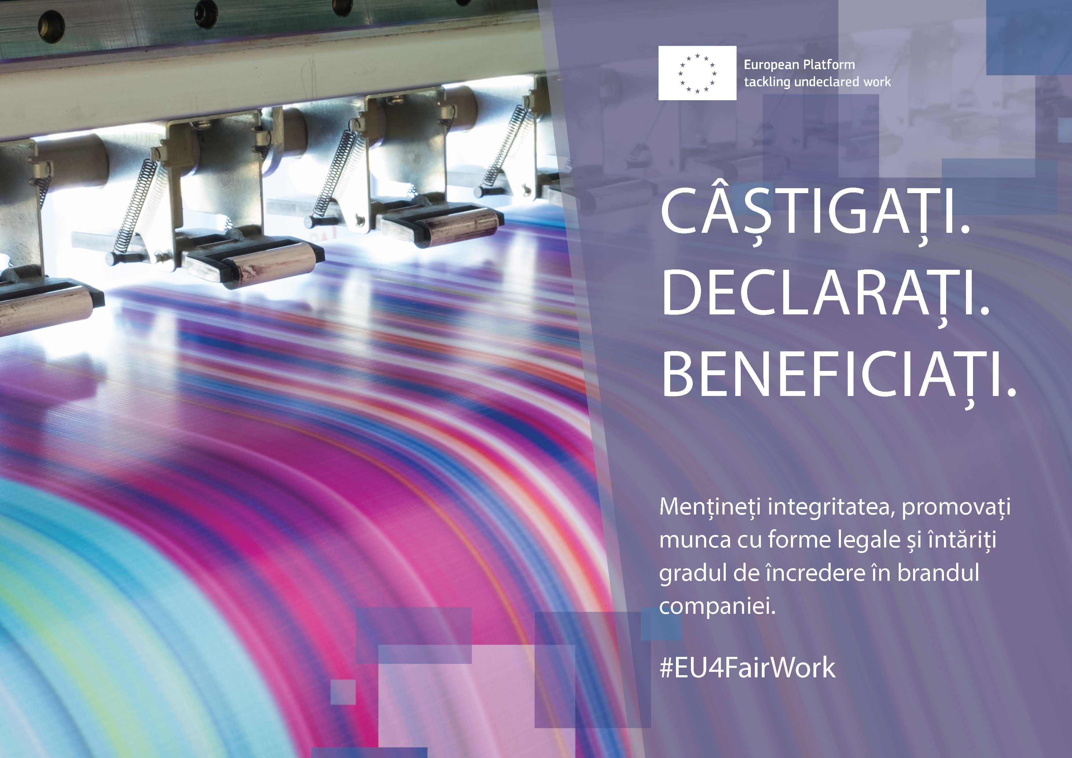 Īn perioada 21-25.09.2020, Platforma europeană pentru intensificarea cooperării în materie de muncă nedeclarată (UDWP), al cărei membru este și Inspecția Muncii, împreună cu Comisia Europeană, desfășoară, sub denumirea #EU4FairWork, o Campanie europeană de conștientizare a lucrătorilor și a angajatorilor cu privire la beneficiile muncii declarate.